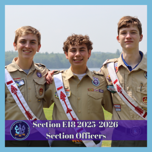 During the 2025 Conclave held at Camp Keowa in Narrowsburg, NY Section E18 elected new officers. These officers were sworn in by 2025 Eastern Region Chief Elijah Aiken: Jake Harmon